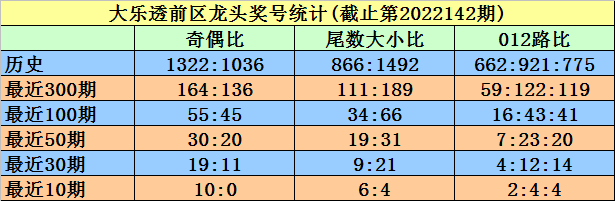 龙头号码尾数大小比为6:4,012路比为2:4:4,奇偶比为10:0。
