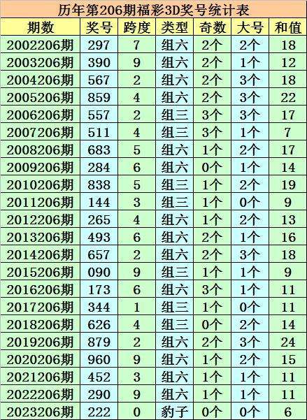 开奖回顾:福彩3D第2023206期奖号:222。