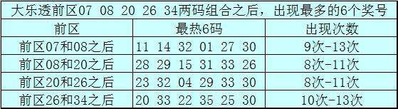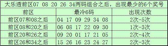 前区冷码统计:大乐透第25038期前区奖号为:07、08、20、26、34,截止第25038期历史上大乐透已经开出了2706期奖号了,在连续两码奖号中: