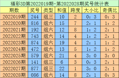 上期回顾:福利彩票3D第2022028期开出奖号086。奖号类型:组六,大小形态:小大大,奇偶形态:偶偶偶。