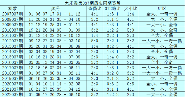 范秋雨体彩大乐透第2023037期历史同期定位分析: