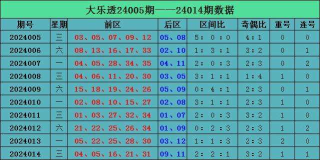 其中前区奇偶比为3:2,连码开出1组04 05,重号开出1枚05,后区号码形态为奇奇:09 11。