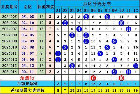 本期看好偶偶组合后区开出,参考后区开出号码:06 10。