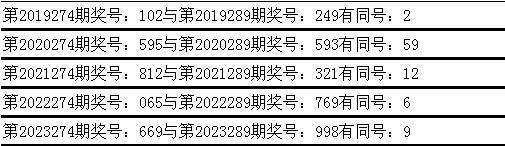 与前期历史同期奖号对比分析,在最近五年开奖中,第274期同期奖号与第289期同期奖号都出现了相同号码: