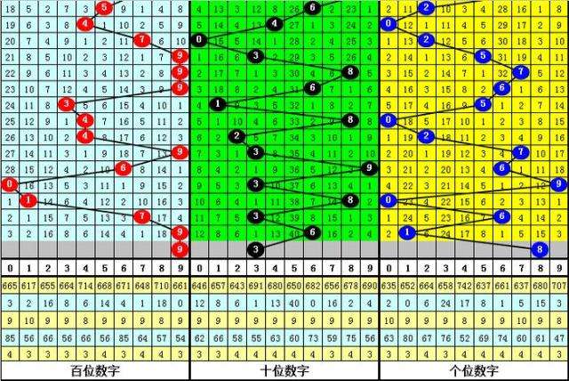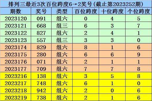 首位跨度分析:首位号码最近3期奖号为1-7-9,连续两期跨度为6、2,历史上首位号码连续两期分别开出跨度6、2的现象共出现84次,其前两次开出奖号分别为: