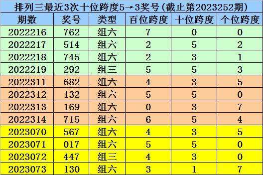第2023070-第2023072期奖号:567、017、447,其下期奖号为:130,中位号码跨度为3;