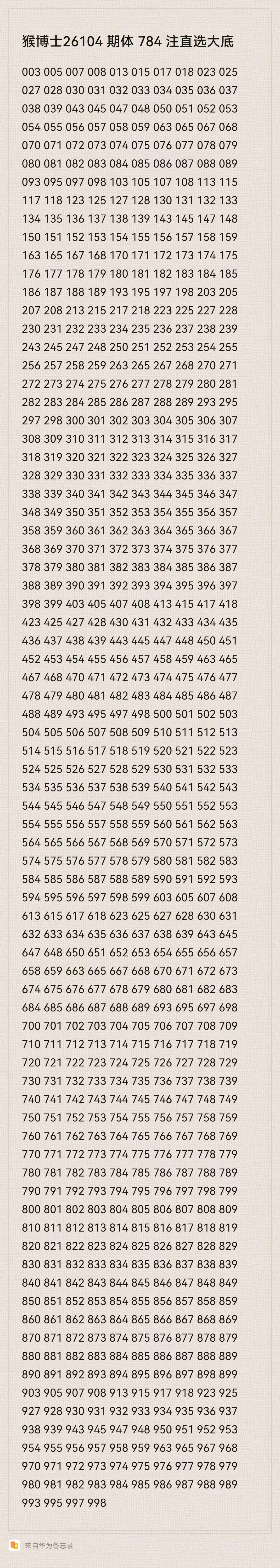 猴博士26104期排列三784注直选大底:(可以当母底用,然后进行缩水)