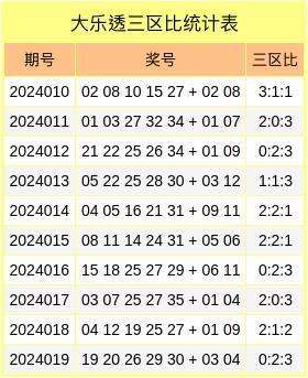 前三区综合分析:大乐透第2024020期前三区比关注3:1:1。