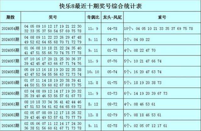 福彩快乐8第2024063期开出奖号:02 05 06 07 11 12 14 17 24 30 36 38 51 56 60 61 67 71 73 78,其中奖号奇偶比为9:11,出现6个重号02、05、07、12、17、61,开出连码05 06 07、11 12、60 61。