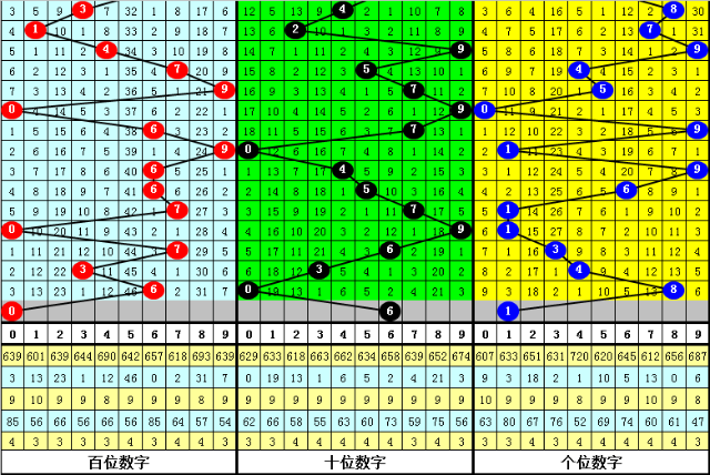 3、在以上0-9号码频次中,号码大小比为29:35,012路比为21:24:19,本期预计百位开出0路号码,参考号码0。