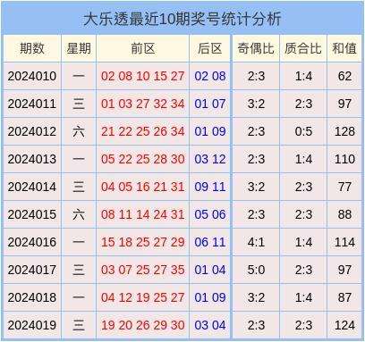 奇偶分析:上期前区号码奇偶比开出2:3。最近10期前区号码的奇偶比为28:22,其中奇数开出较多。本期预计偶数开出较多,参考奇偶比为2:3。