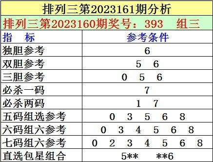 1。排列三最近十期分别开出号码:383-318-750-433-853-251-786-447-319-393,其中有6期奖号开出了上期的重复号码,本期防重号轮空,排除第2023160期奖号:393中的号码,关注号码:5。