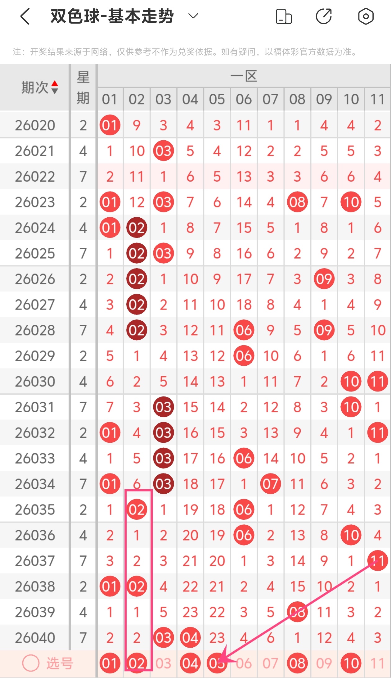 上期(第2026040期)走势回顾
