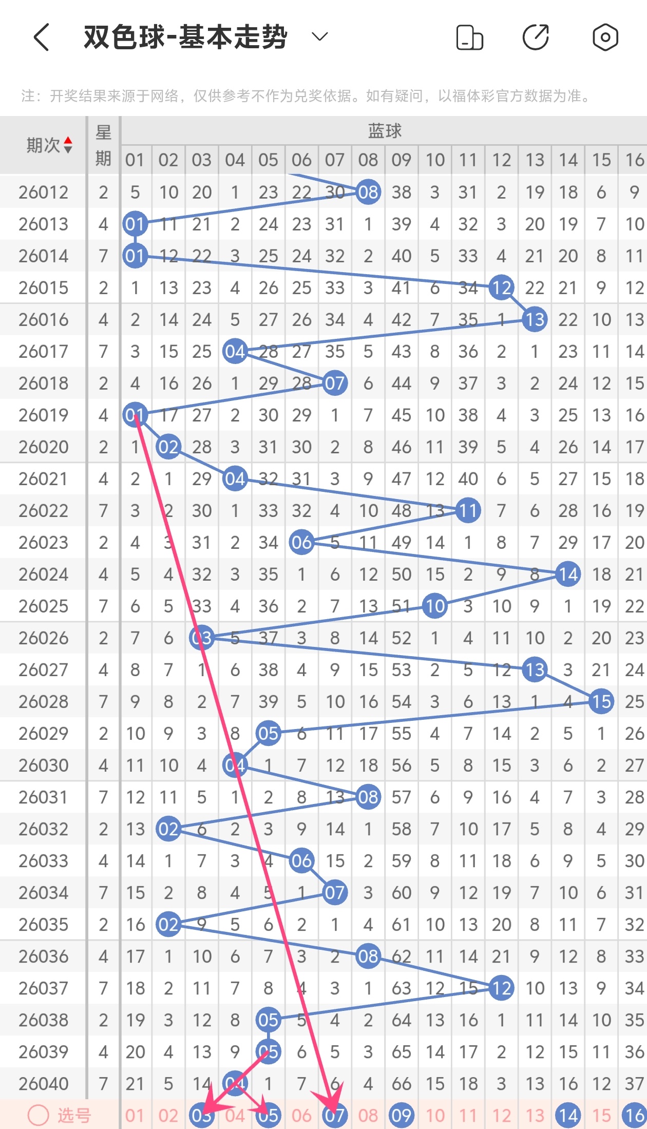 蓝球5码推荐:03 05, 07, 09, 14,