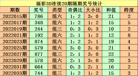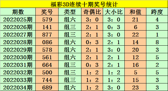 上期回顾:福彩3D第2022034期奖号:689。组六、大大大、偶偶奇。