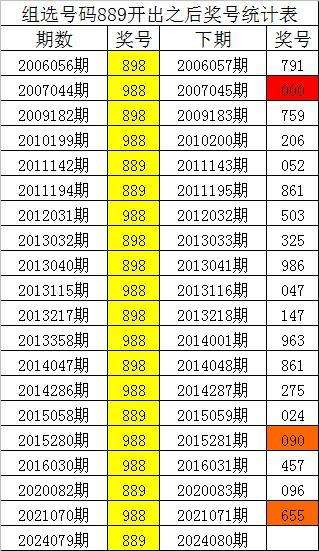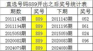从上表统计可以看出,直选号码889开出之后,其下期奖号: