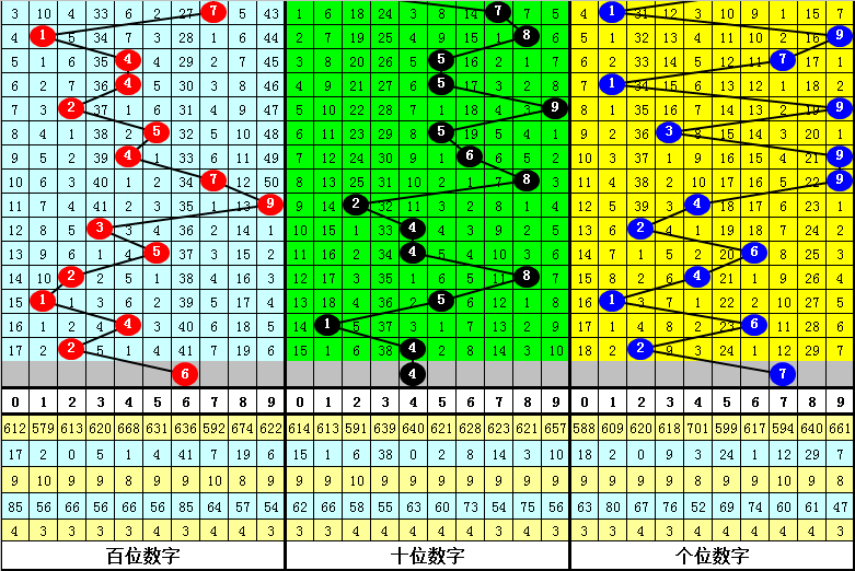 从以上统计可以看出,百十位两码合差6与2同时出现之后其下期两码合差表现最热的4个分别为:1247,本期百十位两码合差可以参考这四码中的数据。