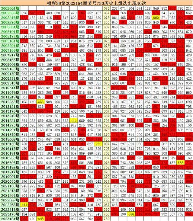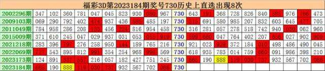 上期回顾:福彩3D第2023184期开出奖号730。