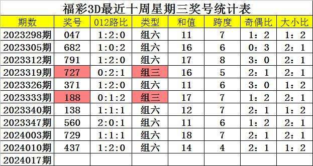 017期四叔福彩3D预测奖号:奇偶、大小分析