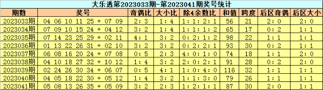 开奖回顾:体彩大乐透第23041期奖号为:05 08 13 26 35+05 09,前区奖号奇偶比为3:2,大小比为2:3,除4余数比为1:2:1:1,跨度为30。后区为一大一小、全奇组合。
