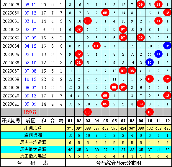 后区分析:上期后区开出奖号05+09,为一大一小、全奇组合,最近9期后区号码大小比为12:6,奇偶比为8:10,本期后区号码大范围参考03、06、07、09、10,精选两码03、10。