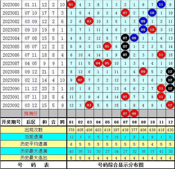 2、后区和值分析:在第093期历史同期奖号中,后区和值分别为:20-13-20-13-21-15-12-20-6-13-6-14-8-15-19-17,和值012路比为6:4:6,奇偶比为8:8,大小比为12:4,今年第093期看好出现奇数和值,关注和值15。
