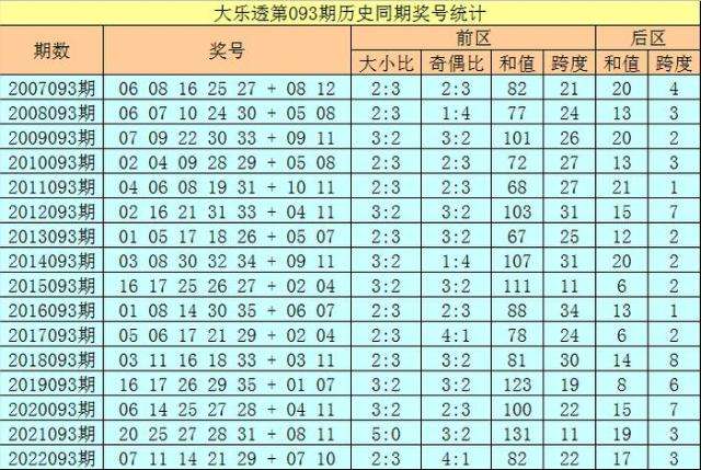 徐欣体彩大乐透第2023093期历史同期奖号分析,历史上第093期同期奖号已开出了16次了。