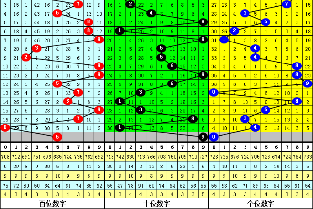 其中,号码0出现14次,1出现13次,2出现12次,3出现15次,4出现13次,5出现10次,6出现17次,7出现15次,8出现17次,9出现18次,奇偶比为71:73,奇偶号码基本持平,本期预计奇数热出,奇偶比参考2:1;大小比为:77:67,大号活跃,本期重防大号走热。