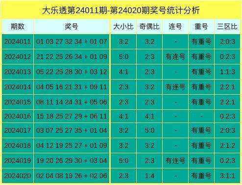 上期前区奖号三区比为3:1:1,本期奖号三区比预测为1:3:1