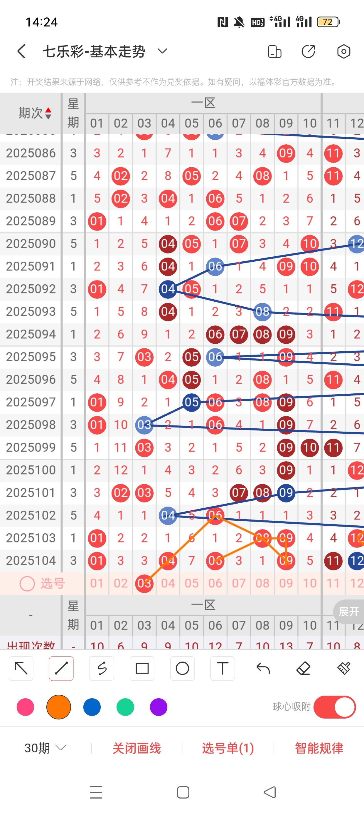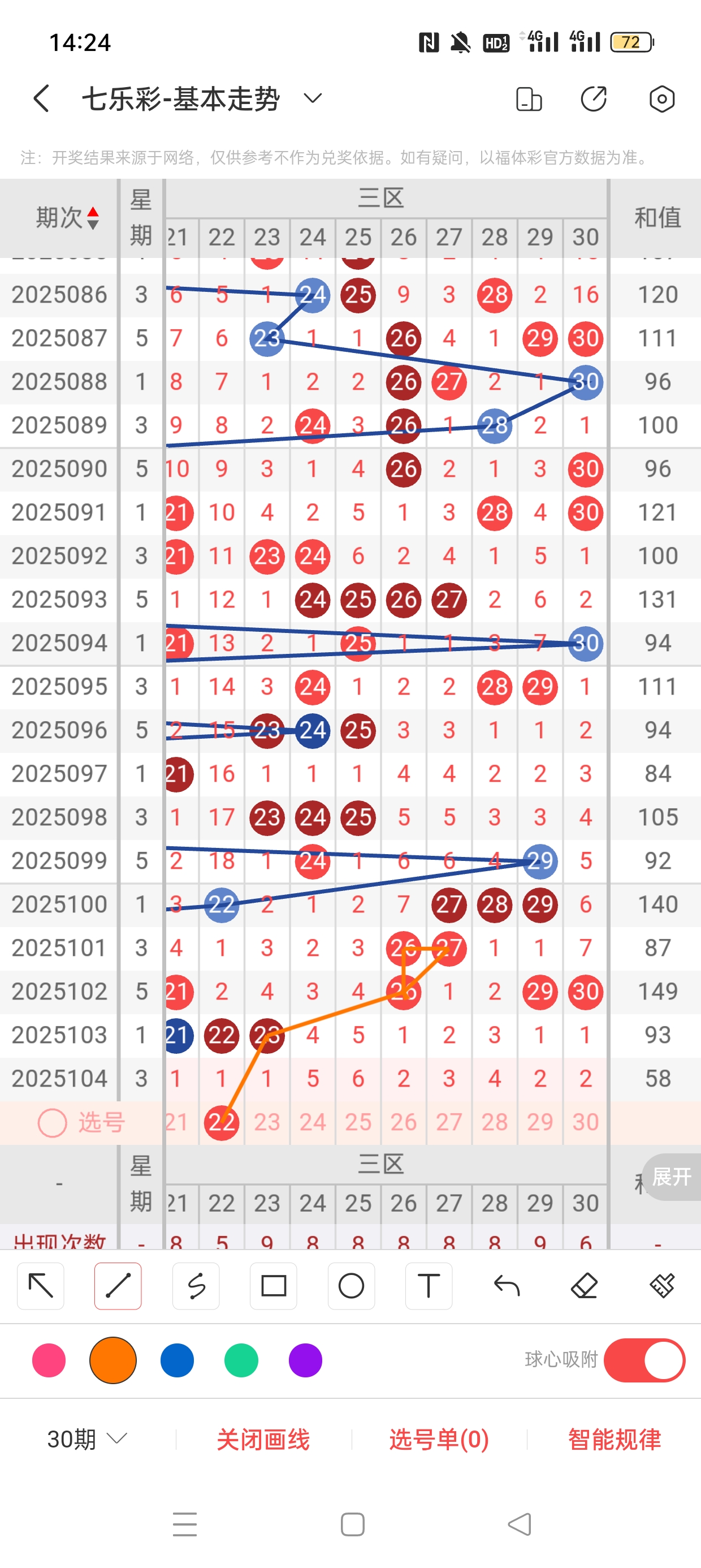 6、分区法:七乐彩共分为三个区,一区1-10,二区11-20,三区21-30。