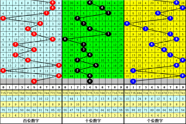 组选分析:在0-9的组选分布图中,最近10期0-2区段开出7个号码,3-6区段开出13个号码,7-9区段开出10个号码,上期0-2区段没有出号,本期重防前端号码热出,注意7-9号码断区。