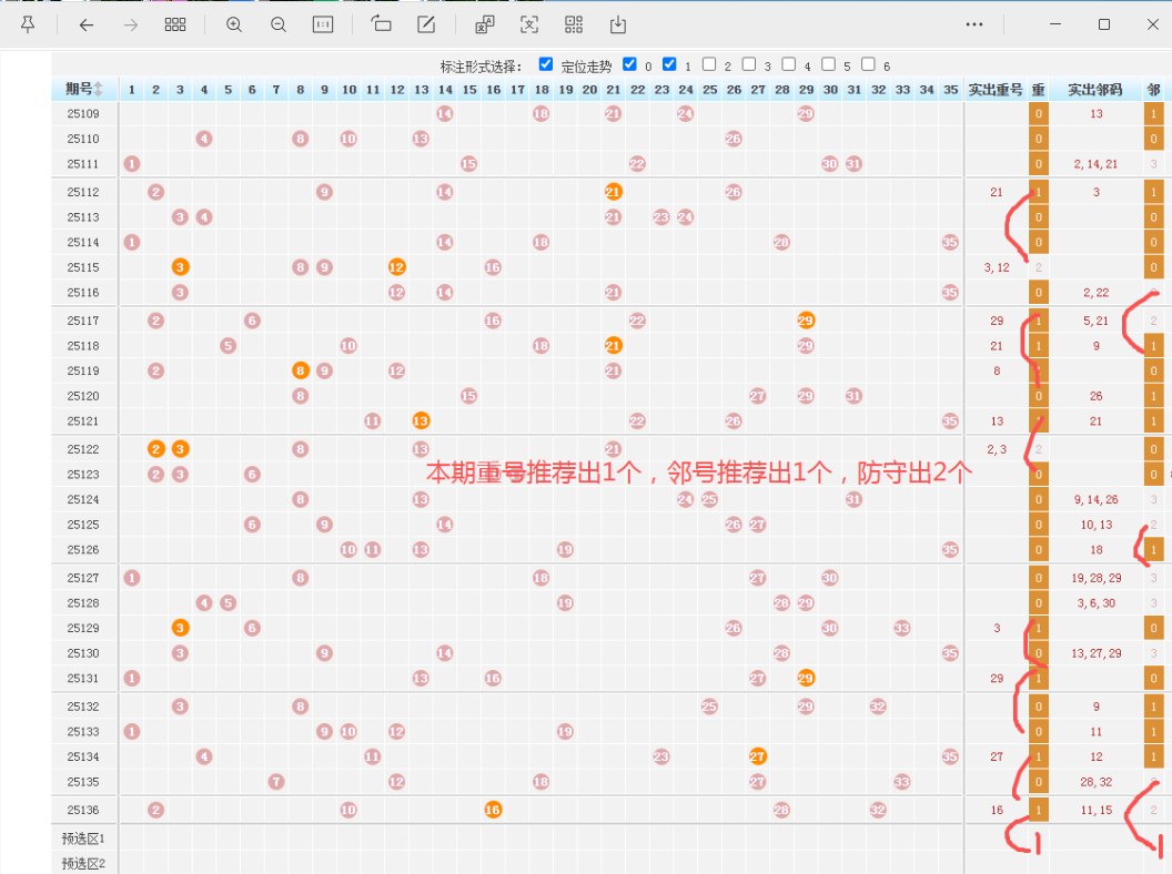 1、前区重号走势:上期前区开出1个重号,近73期出号个数为:-1-1-0-0-1-1-2-0-0-0-1-1-0-1-0-1-0-0-1-1-12--0-0-1-0-3-1-0-2-0-0-1-0-0-1-2-1-1-0-1-1-1-0-1-0-0--1-0-0-0-0-2-0-1-1-0-2-0-0-0-0-0-0-1-0-1-0-0-0-1-0-1-,根据出号规律出100101后紧随出-0-0-0-2-1-0-1-2-0-1-,本期推荐出1个,本期重点推荐出1个。