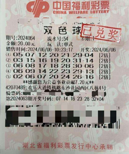 6月6日,福彩双色球第2024064期开奖。当期湖北省共中得14注二等奖,小陶独占其中2注,获得奖金11。8万元。