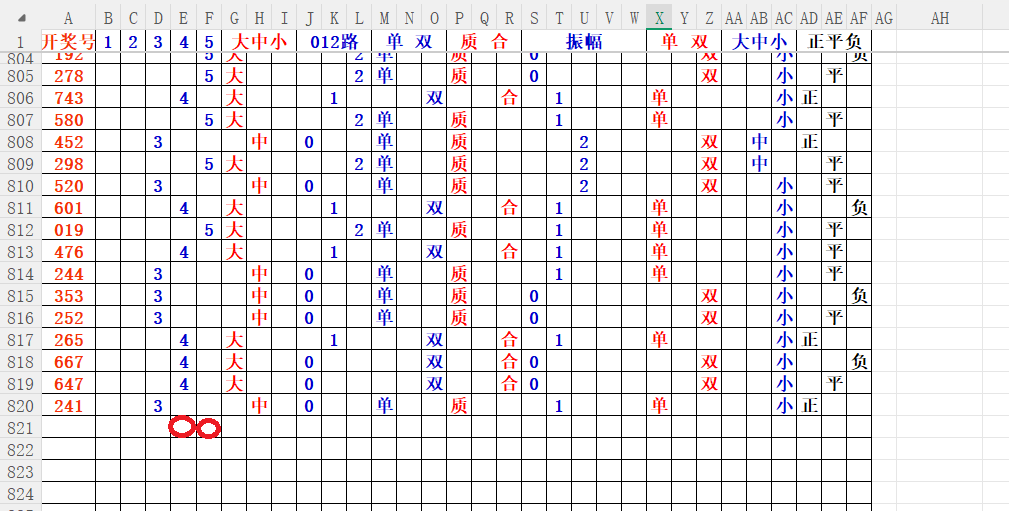 如上图2,大中小分析来看,中大数尾3456尾