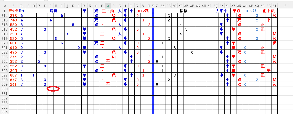 跨度:就是开奖号,最大数减去最小数所得的数,就是跨度。