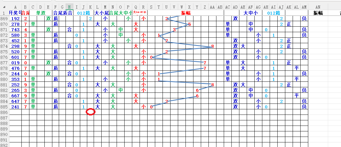 如上图2,012路分析,01路尾走比较好,关注0369147尾;