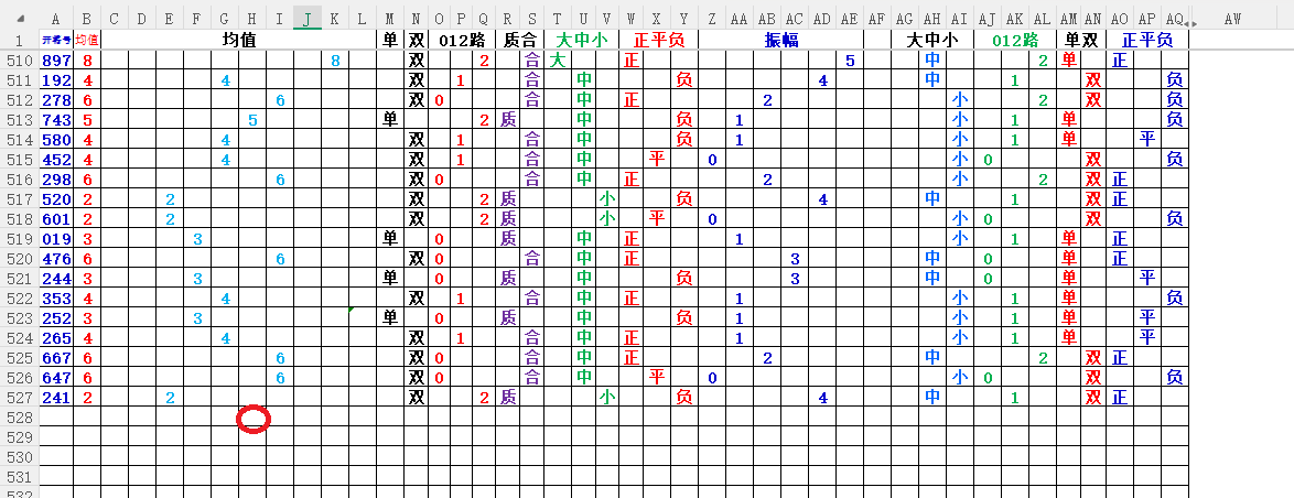 均值:就是开奖号每各数的总和除3,然后得到的余数,如果不够整除可以+1,-1,直到被整除得的数就是均值