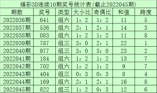 开奖回顾:福利彩票3D第22045期奖号开出822。奖号类型为组三,奇偶形态为偶偶偶,大小形态为大小小。