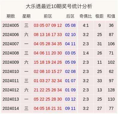 奇偶分析:在最近10期前区奖号奇偶分析中,偶数占据优势,上期奇偶比为3:2,本期预测奇偶比为2:3。