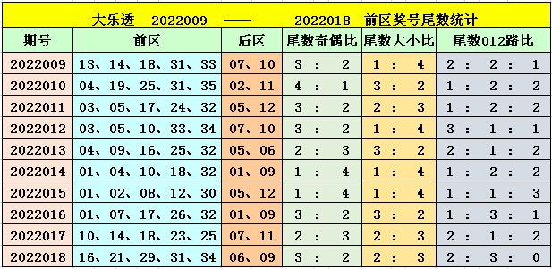 大乐透第2022019期前区奖号尾数分析: