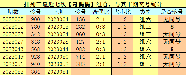开奖回顾:排列三第2023053期开奖号码为:364。奖号类型为:组六,大小类型为:小大小,奇偶类型为:奇偶偶,包含重号:3。