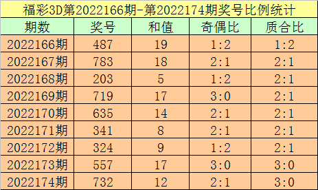 开奖回顾:福彩3D第2022174期:奖号为732,奖号质合比为3:0,大小比为1:2,跨度为5,类型为组六。