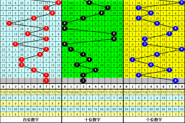 百位分析:上期出现号码7为:质数、大号,在连续9期开奖中,百位分别为:合数、小号:4;质数、大号:7;质数、小号:2;质数、大号:7;合数、大号:6;质数、小号:3;质数、小号:3;质数、大号:5;质数、大号:7,其中大号表现频繁,质数频繁开出,百位本期注意质数、大号开出。
