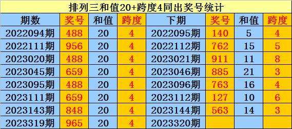上期回顾:排列三第2023319期奖号:965。和值20,跨度4。