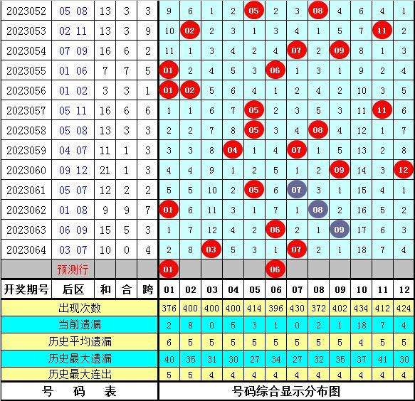 后区分析:上期后区奖号为03+07,本期后区排除重号,四码参考01、04、05、06。