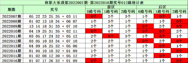 二号球分析:上期该位奖号为07,开出1路号码,该位最近3次1路号码出现之后其下期前区奖号分别为: