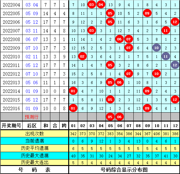 后区上期两码开出01和09,其号码遗漏值为1期+1期,本期后区重点参考热码奖号,四码看好05、06、08、09,两码参考05和06。