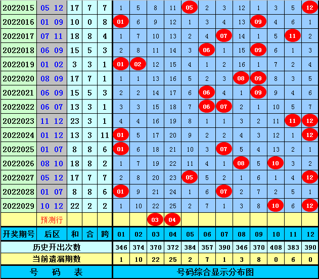 后区分析:上期后区开出号码12和12,最近10期后区奖号奇偶比为10:10,大小比为14:6,012路比为8:8:4,本期后区注意号码02、03、04、07、09,精选两码参考03、04。