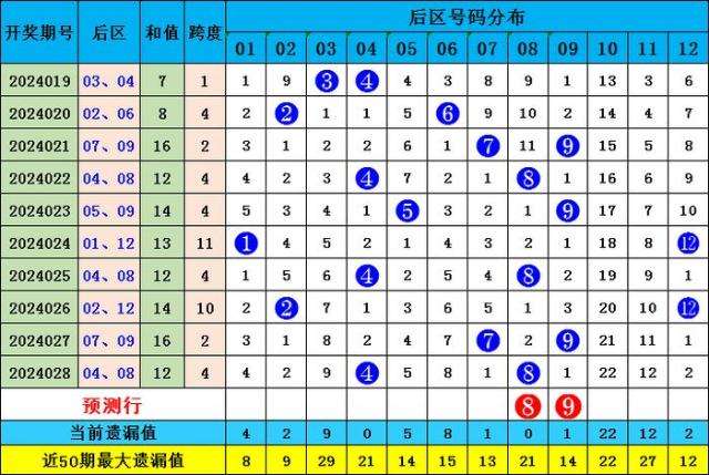 上期后区开出1、2路号码组合:04 08,最近10期后区奖号012路比为7:7:6,本期后区奖号关注2路和0路,后区参考:08 09。