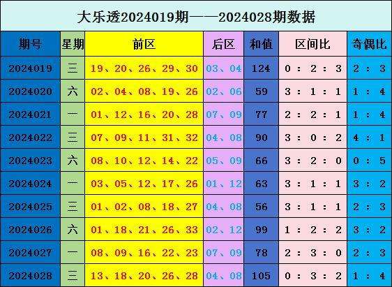 大乐透第2024027期奖号为:前区13 18 20 26 28,后区04 08。龙头:13,凤尾:28,区间比:0:3:2,奇偶比1:4,和值:105。